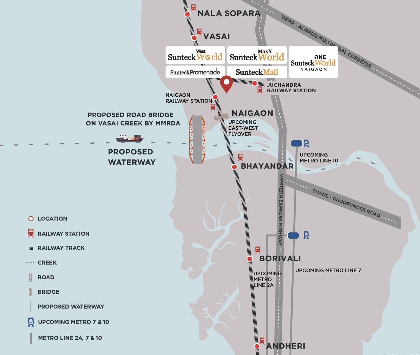 Welcome to Sunteck OneWorld, part of an iconic 150-acre township nestled in the vibrant location of Naigaon. Offering premium 1 and 2 BHK homes with modern design and functional living spaces. Strategically located near major highways, upcoming metro stations, and transport hubs. Residents enjoy over 55 world-class amenities—including a Grand clubhouse, Gymnasium, Swimming pool, Multisport courts, and jogging track—amidst 73% open green spaces and panoramic mountain views. The township also features high-street retail for added convenience, making it an ideal choice for families and professionals seeking comfort, connectivity, and a vibrant lifestyle in the Western Suburbs of Mumbai.